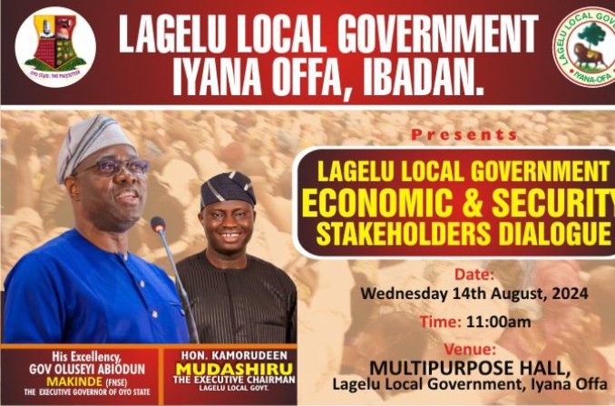 The Lagelu local government under the leadership of its Executive Chairman, Hon. Mudashiru Kamorudeen- has set out to hold a significant dialogue on economic and security issues on Wednesday, August 14, 2024. The event, scheduled to take place at the Council Secretariat, aims to bring together key stakeholders from various sectors to address pressing challenges and opportunities in the region.