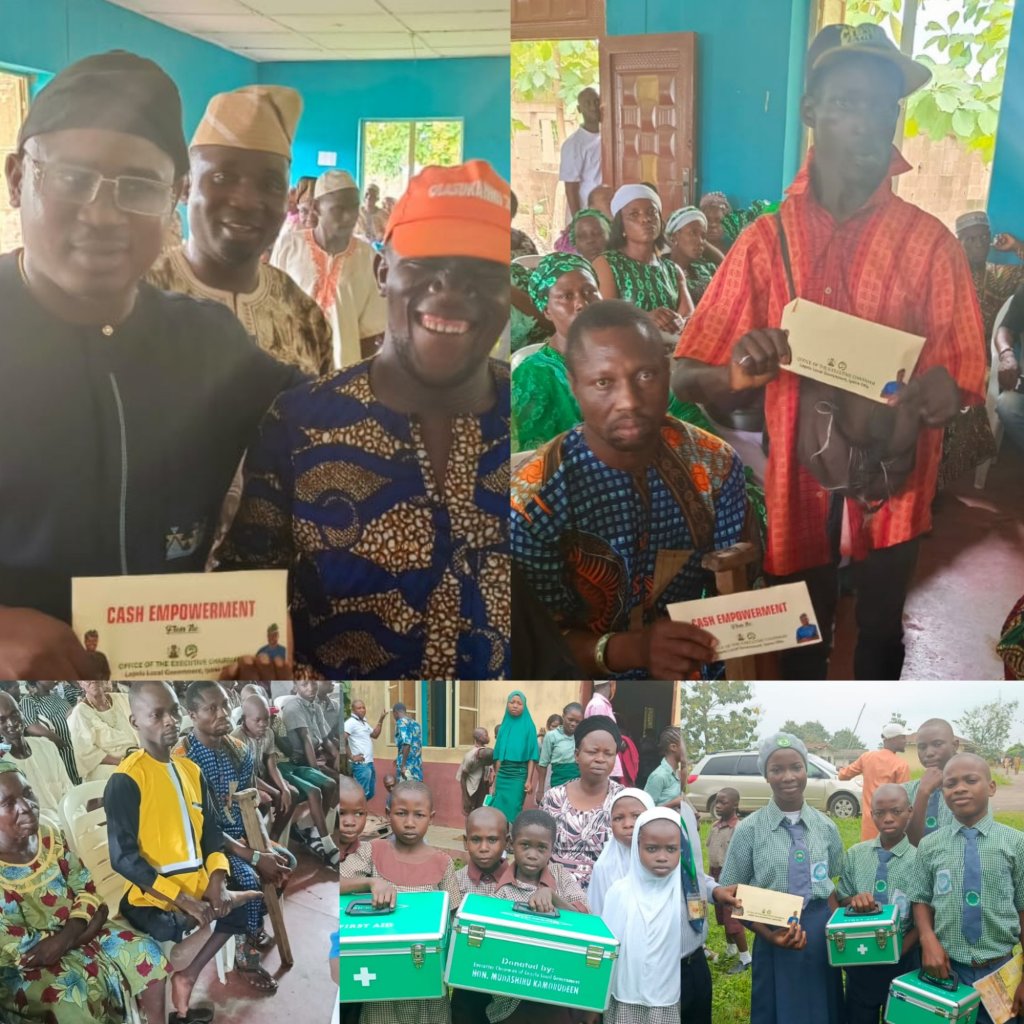 During the gathering, Chairman Kamoru distributed cash empowerment to a hundred and fifty community members, demonstrating his commitment to uplifting those in need. Additionally, he provided first aid supplies to a total of 15 primary and secondary schools, enhancing health resources available for students and staffs in local schools.